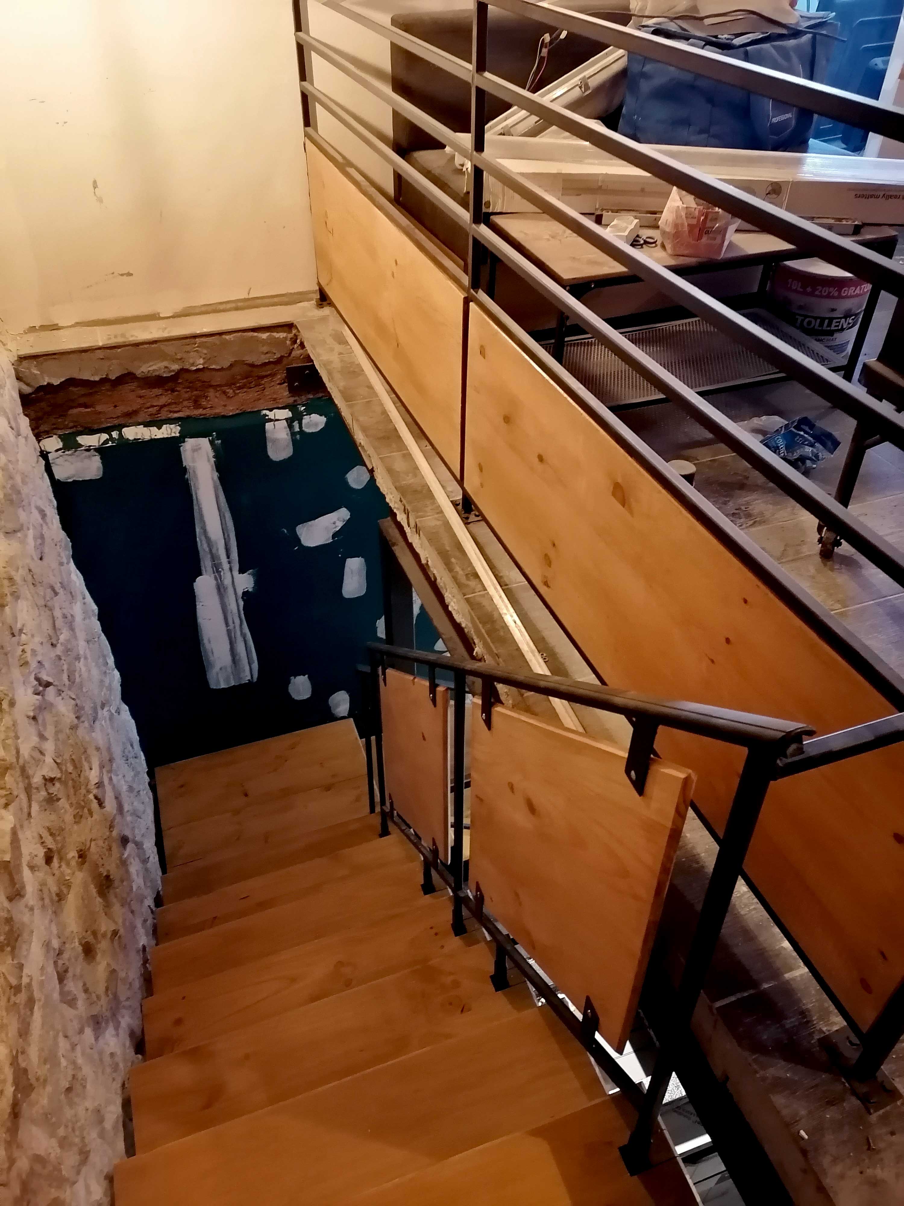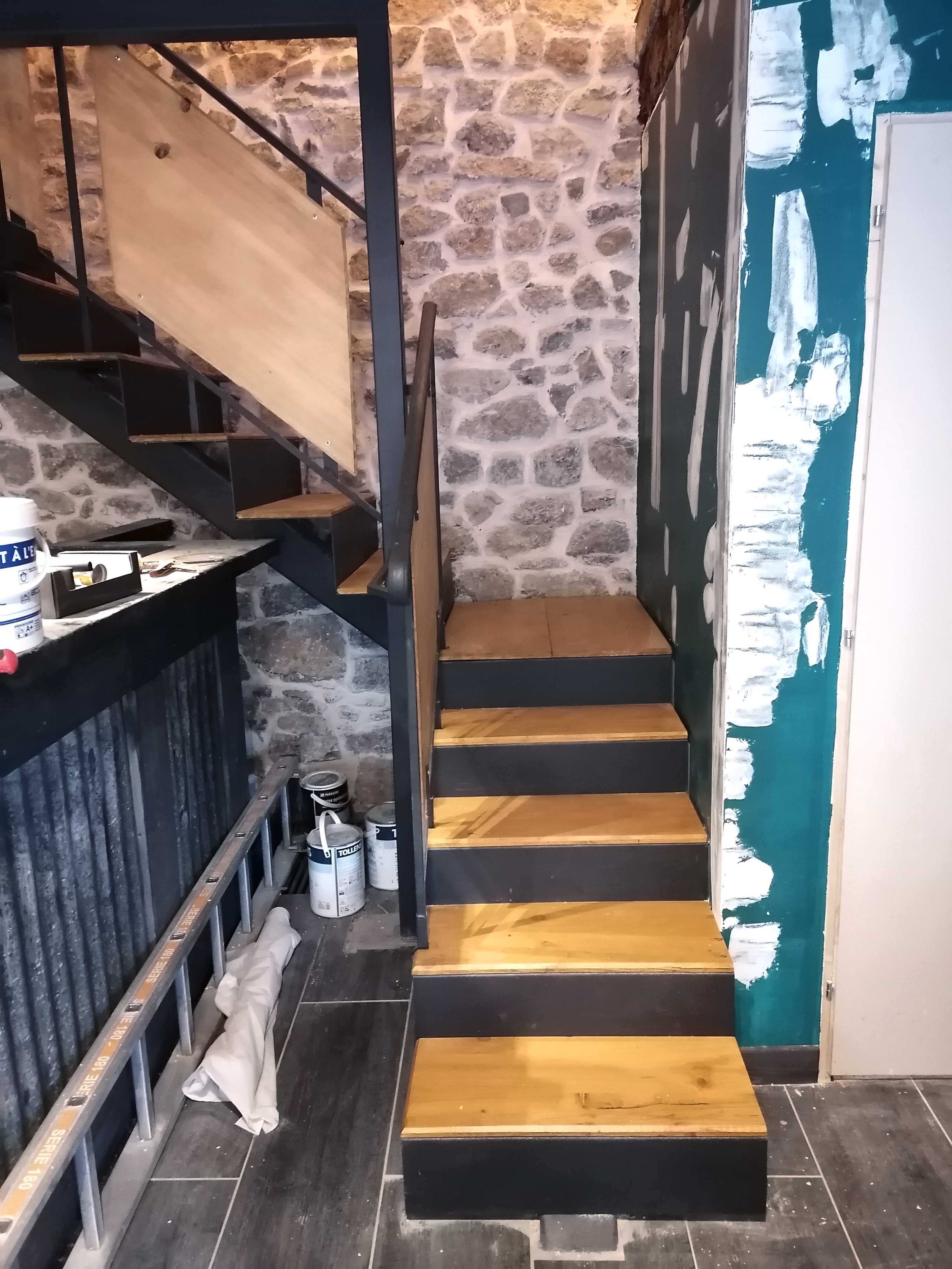 Escalier d'angle, bois et acier, Le ChurchBeer, Toulon
