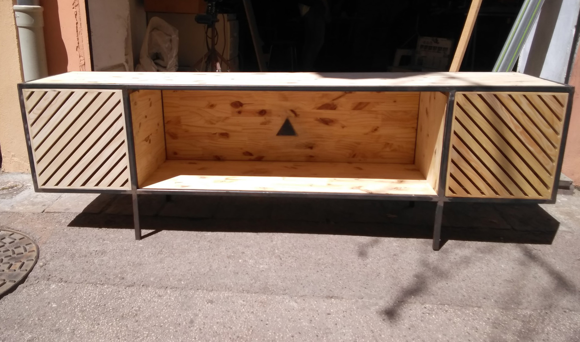 Meuble, bois et acier, particulier, Toulon